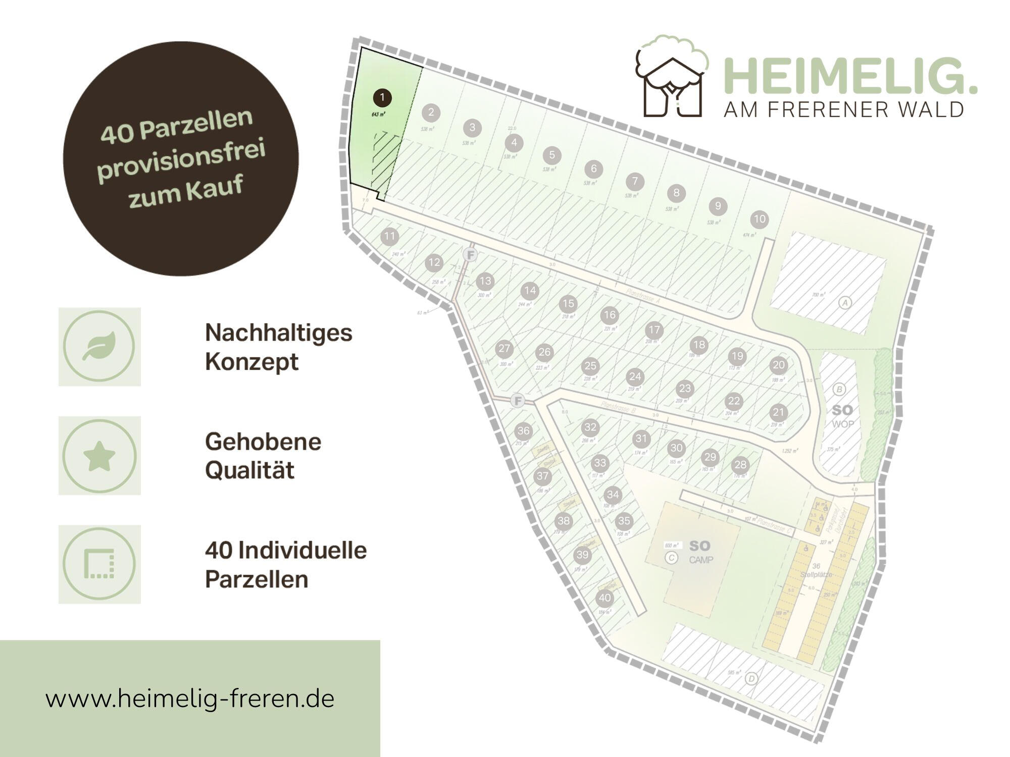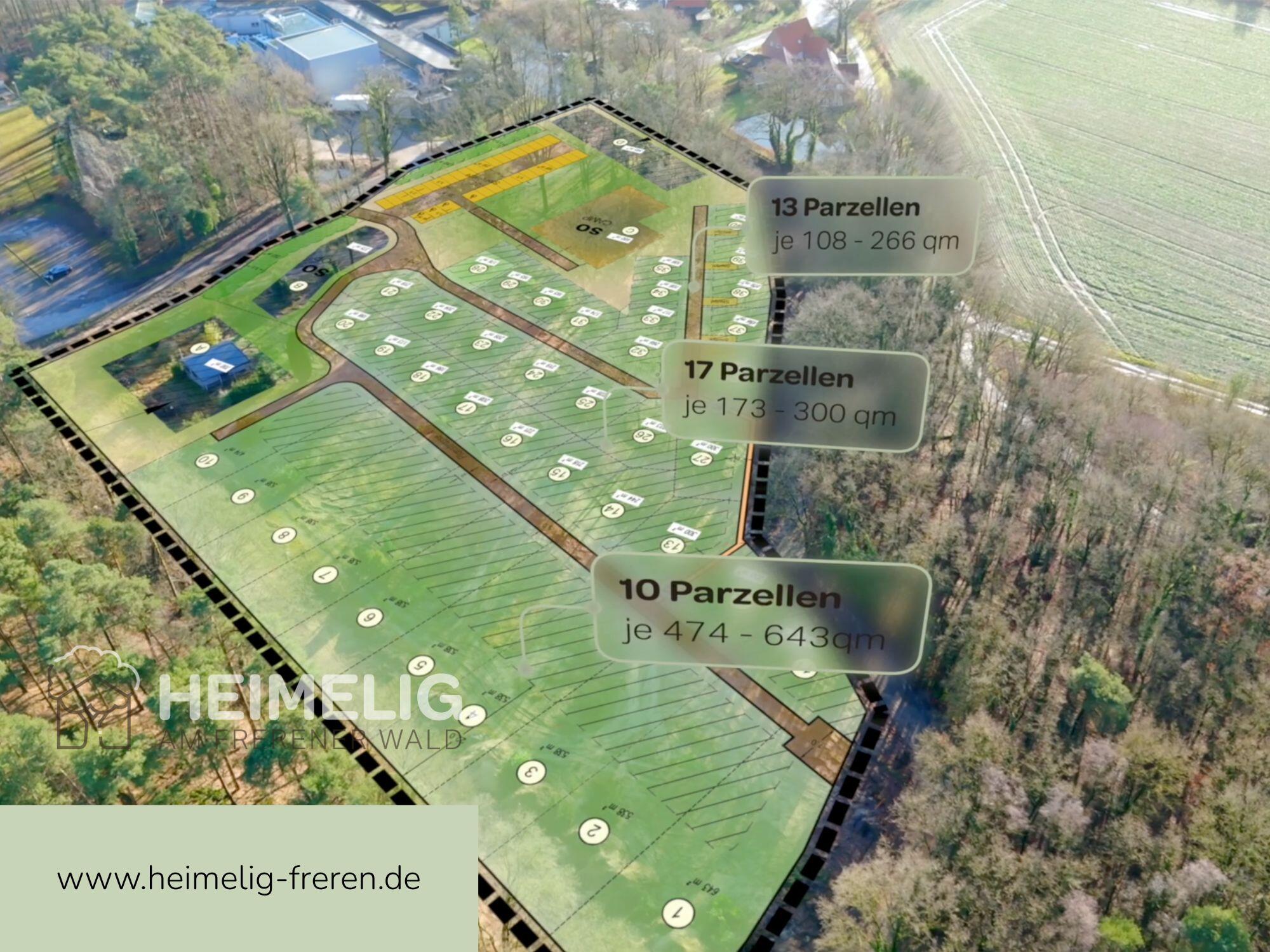 Das gesamte Areal umfasst rund 19.650 qm und ist nach dem Bebauungsplan Nr. 14 „An den Hünensteinen“, 2. Änderung als Ferien- und Wochenendgebiet ausgewiesen.Die Bebauung ist gemäß Bebauungsplan auf ein Kompakthaus mit einer maximalen Grund- und Geschossfläche von jeweils 40 qm begrenzt.