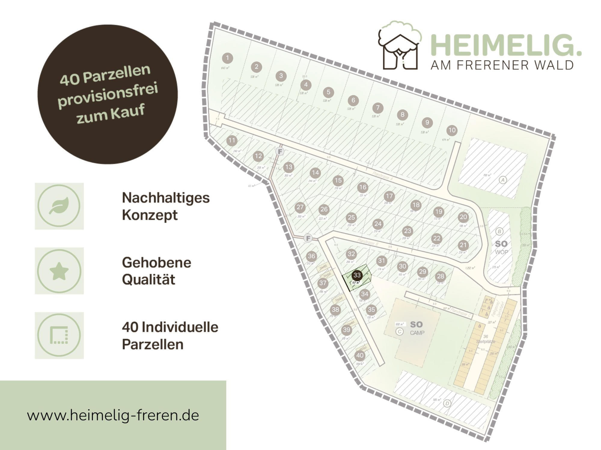 Es entsteht ein hochwertiges, naturnahes Wohnkonzept für Kompakthäuser, das konsequent auf Nachhaltigkeit und ökologische Bauweise setzt:Dezentrale Energieversorgung: Durch moderne Wärmepumpen und Photovoltaikanlagen.