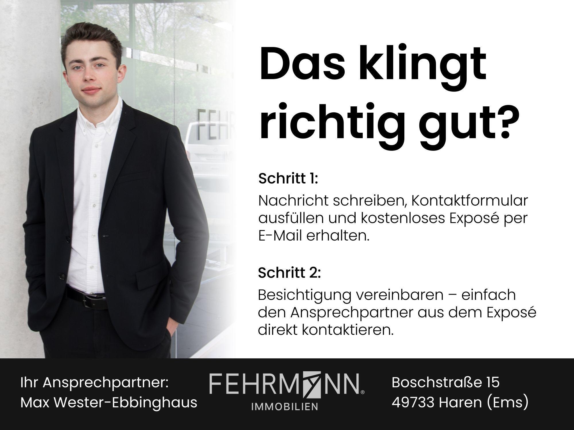 Die angebotene Mietwohnung befindet sich in Haren (Ems), einer lebendigen Stadt mit rund 25.000 Einwohnern im Herzen des Emslands. Die Lage zeichnet sich durch ihre ruhige, familienfreundliche Umgebung aus – und gleichzeitig durch die Nähe zu zahlreichen Einrichtungen des täglichen Bedarfs.In wenigen Minuten erreichen Sie fußläufig oder mit dem Fahrrad die Fußgängerzone mit ihren vielfältigen Einkaufsmöglichkeiten, gemütlichen Cafés, Restaurants und dem beliebten Marktplatz. Auch das Rathaus sowie diverse Freizeitangebote wie Sportvereine oder das Freizeitbad „Topas“ befinden sich in der Nähe.