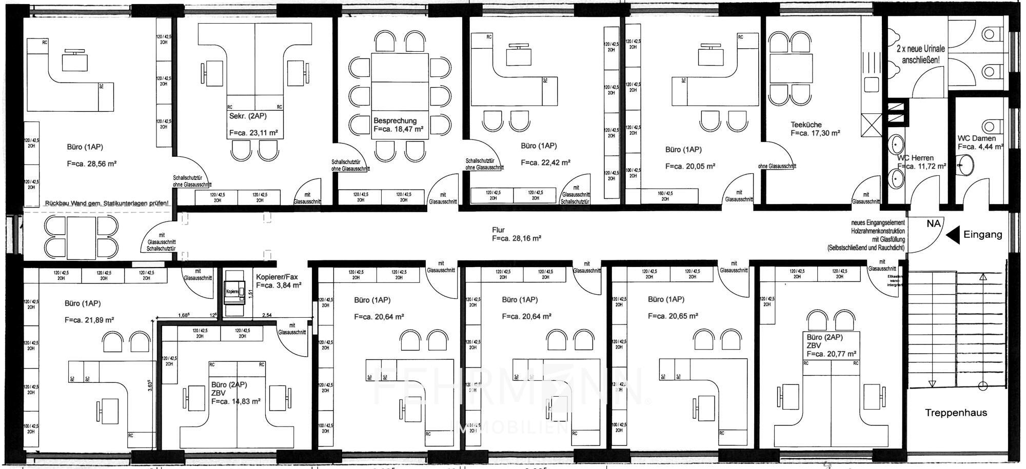 Die Büromöbel können evtl. nach Absprache mit dem Vermieter übernommen werden.