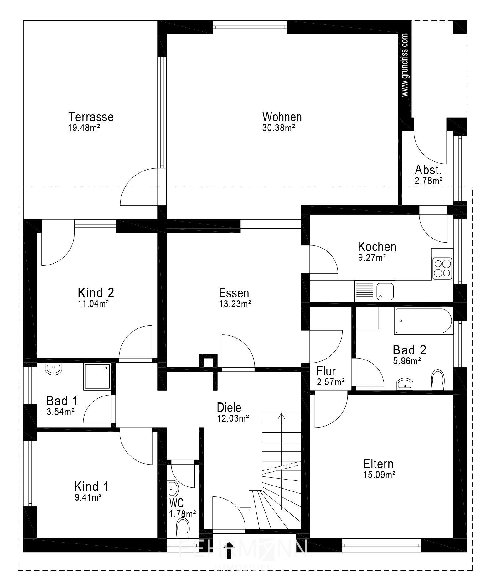 Dieses großzügige Einfamilienhaus in Haren vereint durchdachte Architektur mit vielseitigen Nutzungsmöglichkeiten und schafft damit ideale Voraussetzungen für komfortables Wohnen – sowohl für Familien als auch für Mehrgenerationenkonzepte.Bereits beim Betreten des Erdgeschosses beeindruckt der großzügige Wohn- und Essbereich, der sich über zwei Ebenen erstreckt und durch seine Offenheit ein besonderes Raumgefühl vermittelt. Große Fensterflächen sorgen für viel Tageslicht und bieten einen herrlichen Blick in den Garten. Von hier aus gelangen Sie direkt auf die Terrasse, die zu entspannten Stunden im Freien einlädt. Die angrenzende Küche mit praktischem Hauswirtschaftsraum überzeugt durch kurze Wege und viel Stauraum.