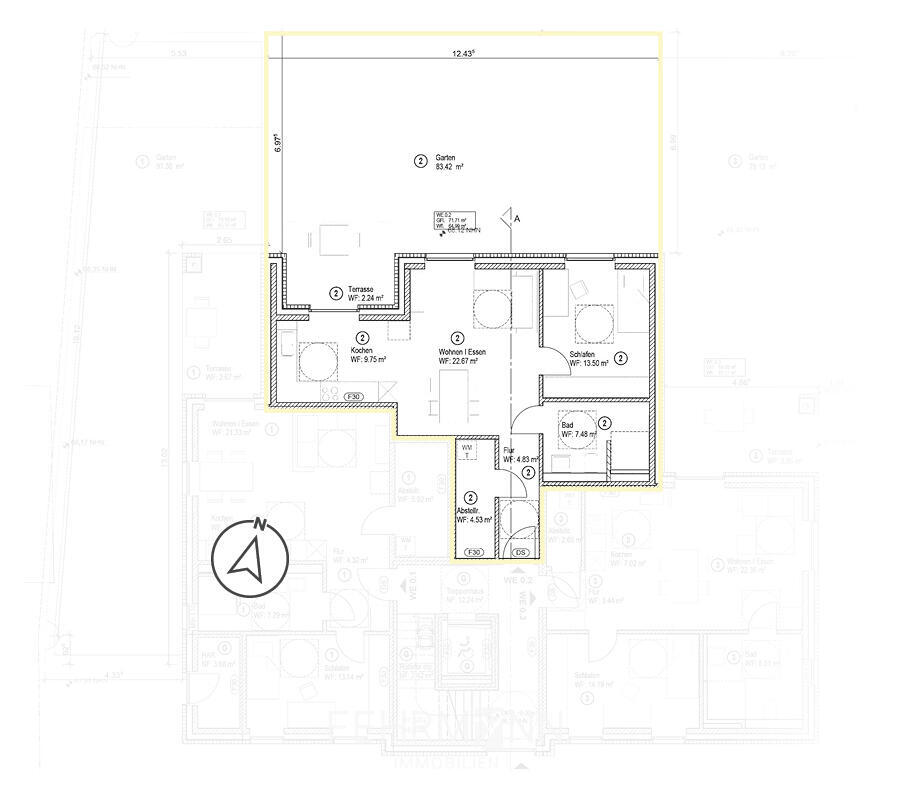 Zur Wohnung gehört ein ca.83 qm großer Garten.