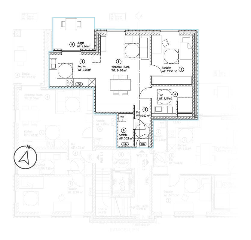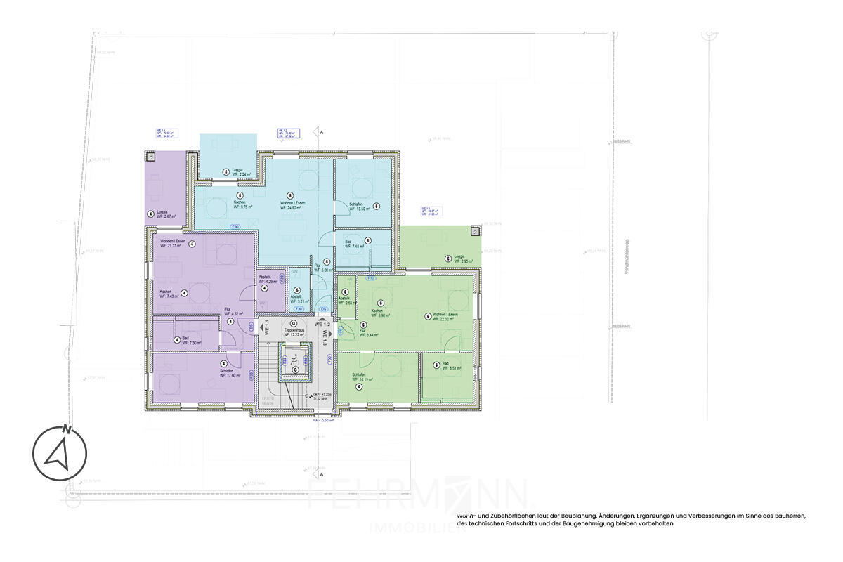 Diese hochwertig ausgestattete Wohnung im Obergeschoss eines neu errichteten Mehrfamilienhauses überzeugt durch moderne Architektur, großzügige Raumaufteilung und energieeffiziente Bauweise. Die Wohnung bietet ca. 67 m² Wohnfläche und ist ab Anfang 2027 bezugsfertig.Herzstück der Wohnung ist der große Wohn-/Ess-/Kochbereich mit ca. 29 m², der viel Platz für individuelle Gestaltung bietet. Bodentiefe Fenster sorgen für Helligkeit, und der direkte Zugang zur Loggia schafft einen fließenden Übergang ins Freie – perfekt zum Entspannen im Freien.