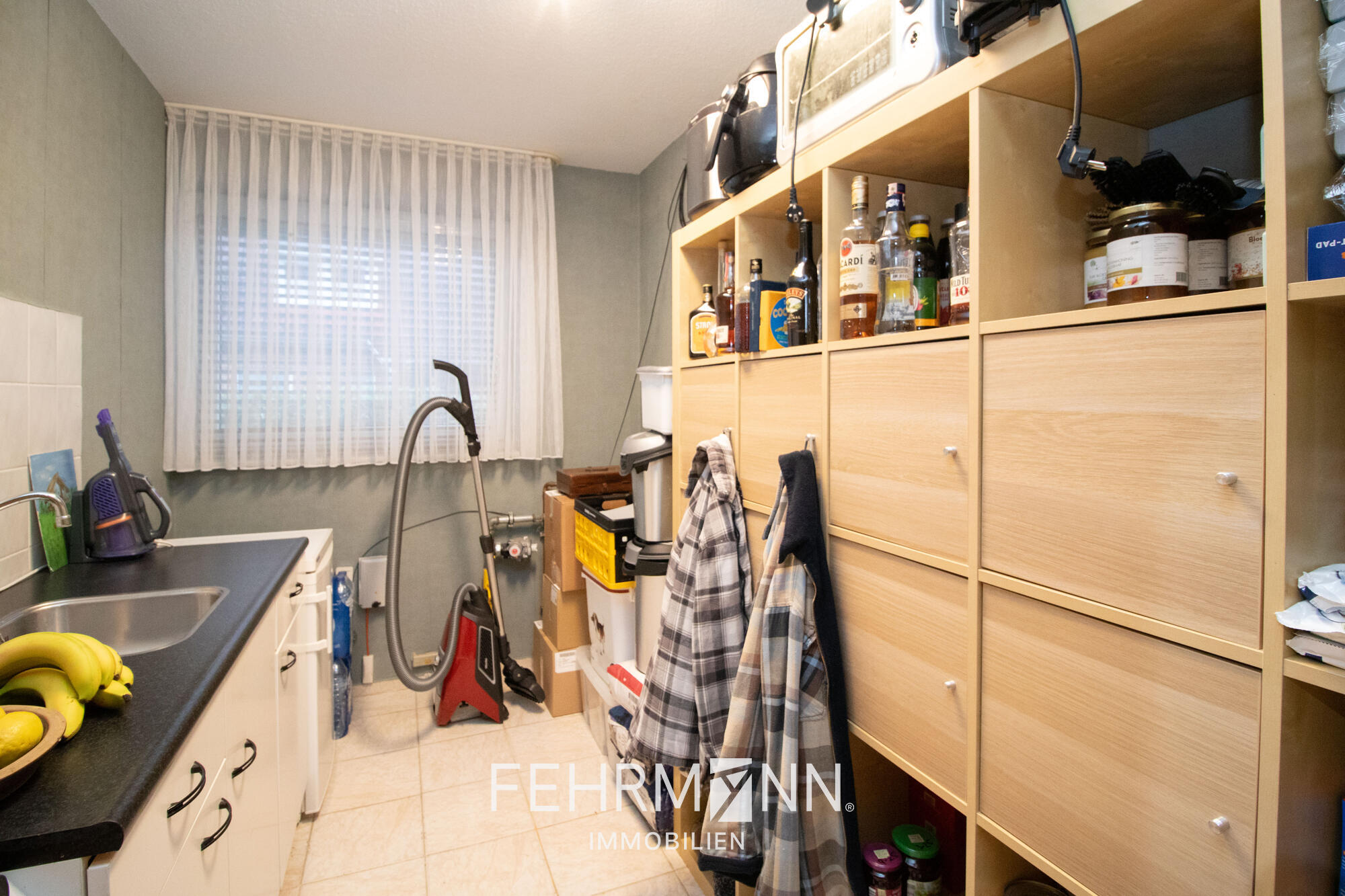 Im Erdgeschoss befinden sich neben dem Gäste-WC ein Schlafzimmer sowie eine moderne Einbauküche mit Erker, die im Kaufpreis enthalten ist.