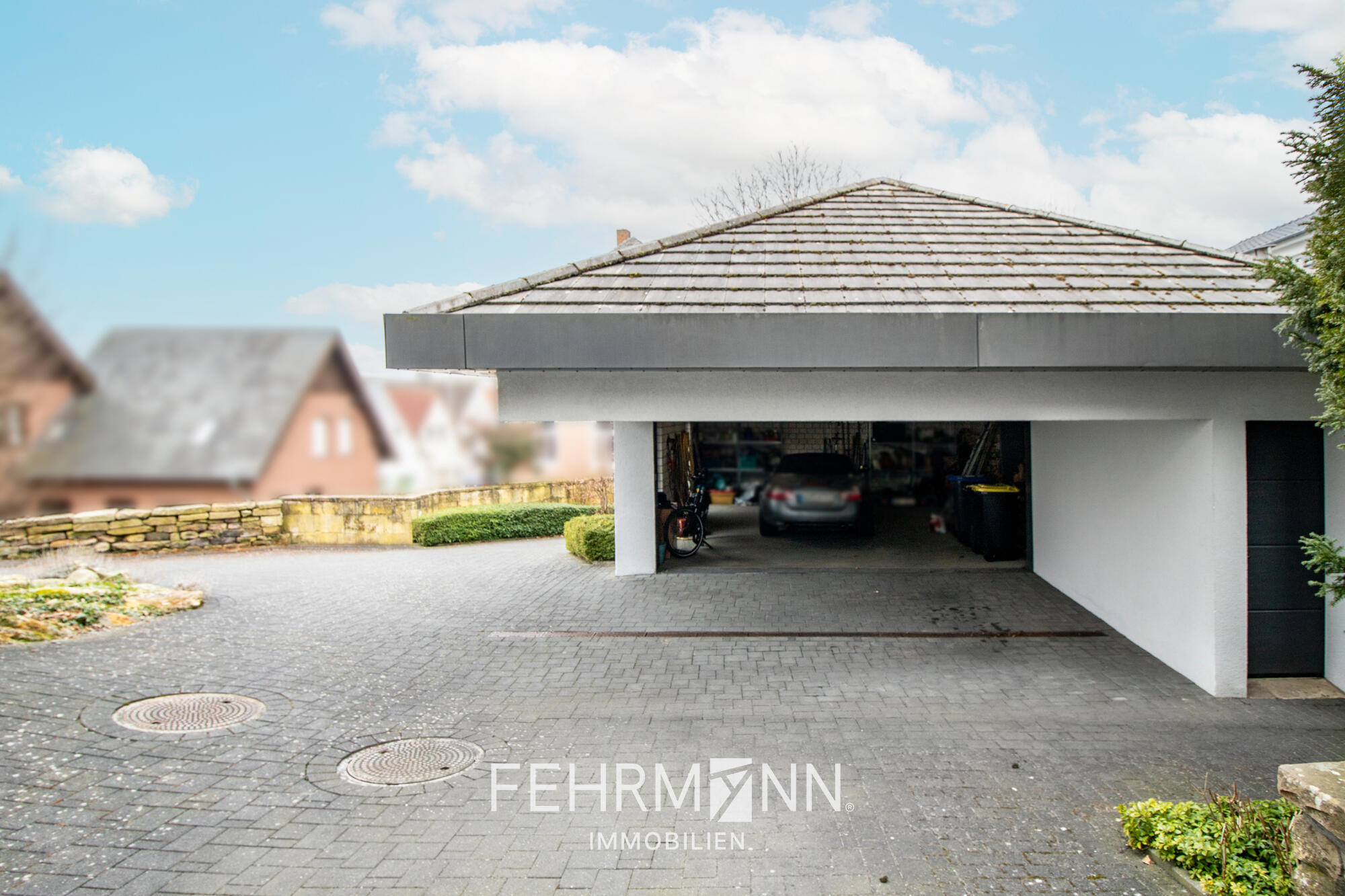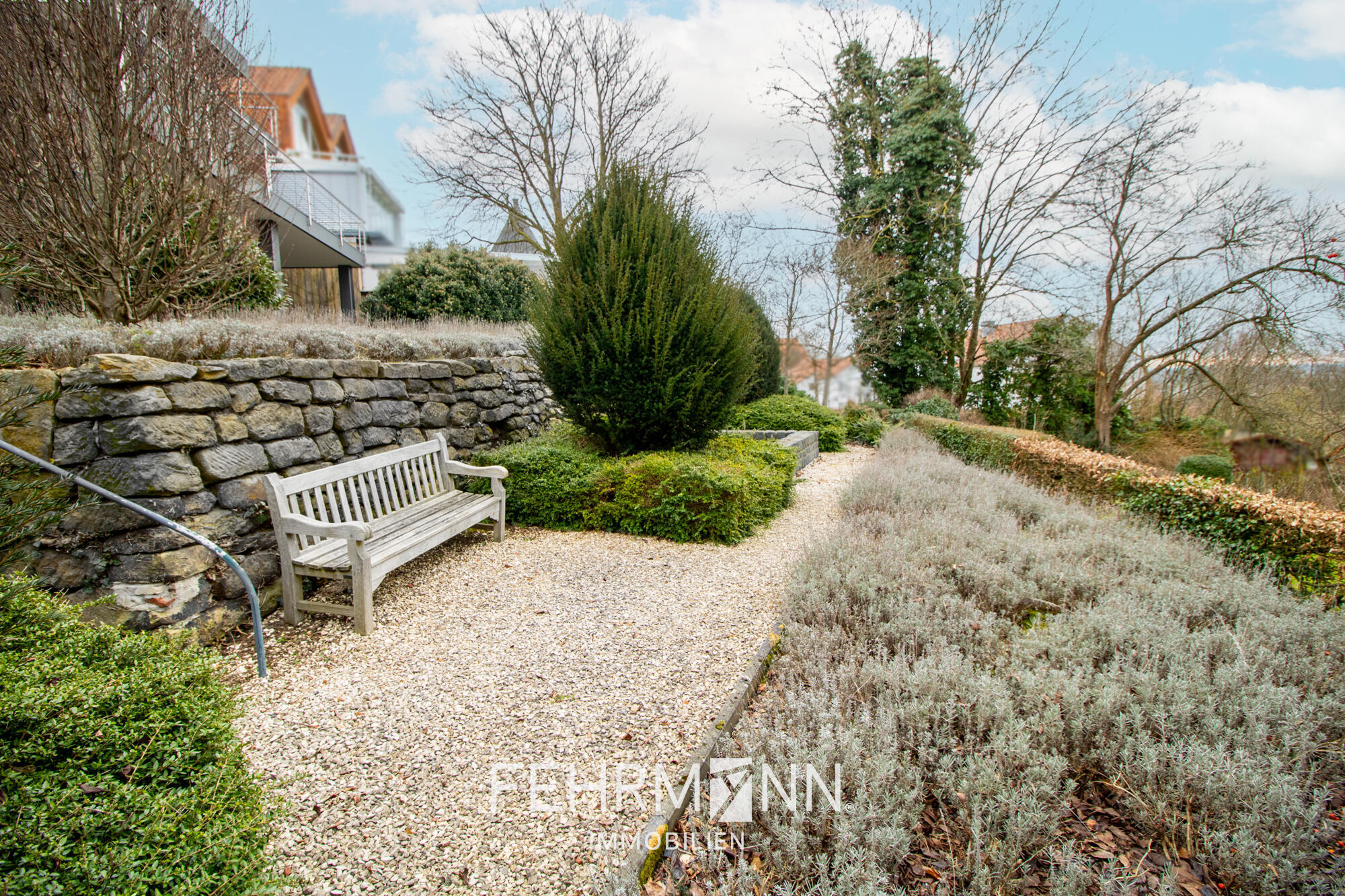 Das großzügige Grundstück von 1.121 m2 befindet sich in Hanglage und besticht durch eine aufwendige Gartenanlage mit einem Wasserlauf über zwei Ebenen sowie mehreren hochwertigen Bentheimer Sandsteinmauern, die dem Anwesen einen ganz besonderen Charme verleihen.