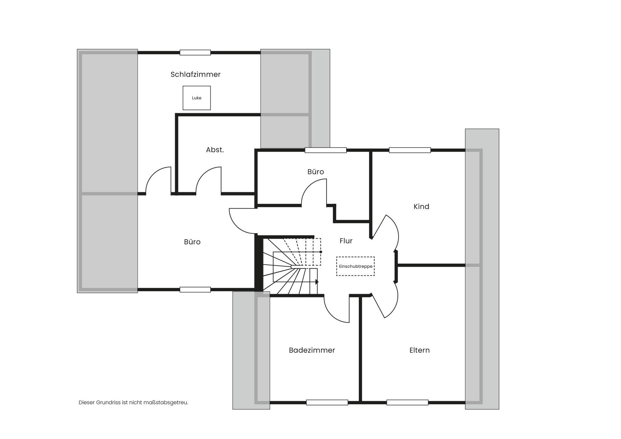 Im Dachgeschoss befinden sich drei Schlafzimmer sowie ein großzügiges Badezimmer mit Eckbadewanne und separater Dusche, das Komfort und Entspannung vereint.