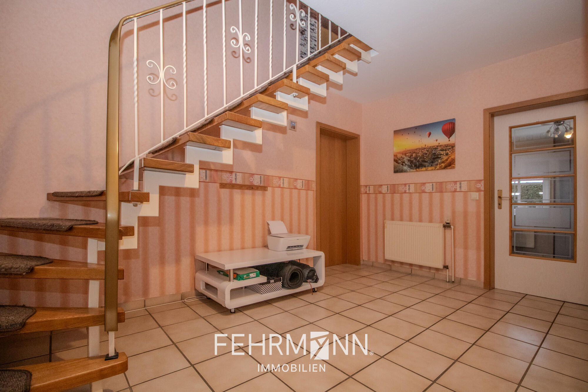 Der großzügige Wohn- und Essbereich besticht durch seine Geräumigkeit und ein angenehmes Raumgefühl. Über den zentral gelegenen Flur gelangt man bequem zum Gäste-WC und in das Obergeschoss. Dort erwartet Sie ein helles und gepflegtes Badezimmer, das mit seinem durchdachten Schnitt und seiner freundlichen Atmosphäre zum Wohlfühlen einlädt und den Komfort für die ganze Familie abrundet.