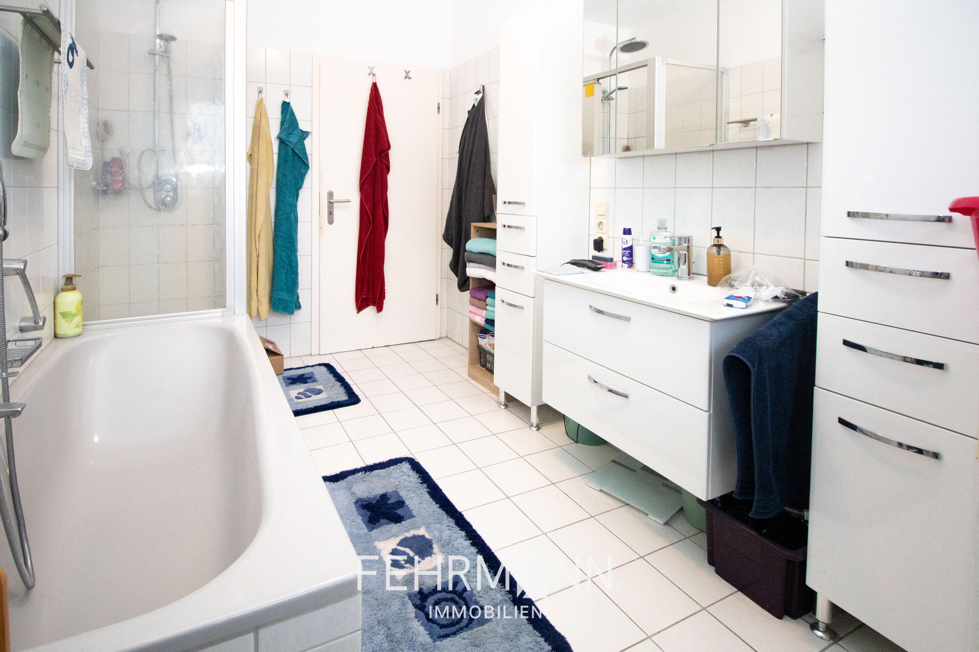 Das Tageslichtbad ist mit einer großzügigen Dusche, einer Badewanne sowie einem WC ausgestattet. Zudem steht ein Anschluss für eine Waschmaschine zur Verfügung.